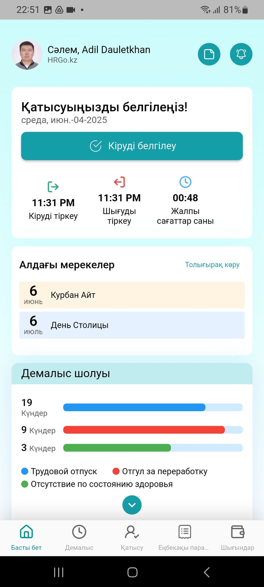 HRGo - мобильное приложение для сотрудников.