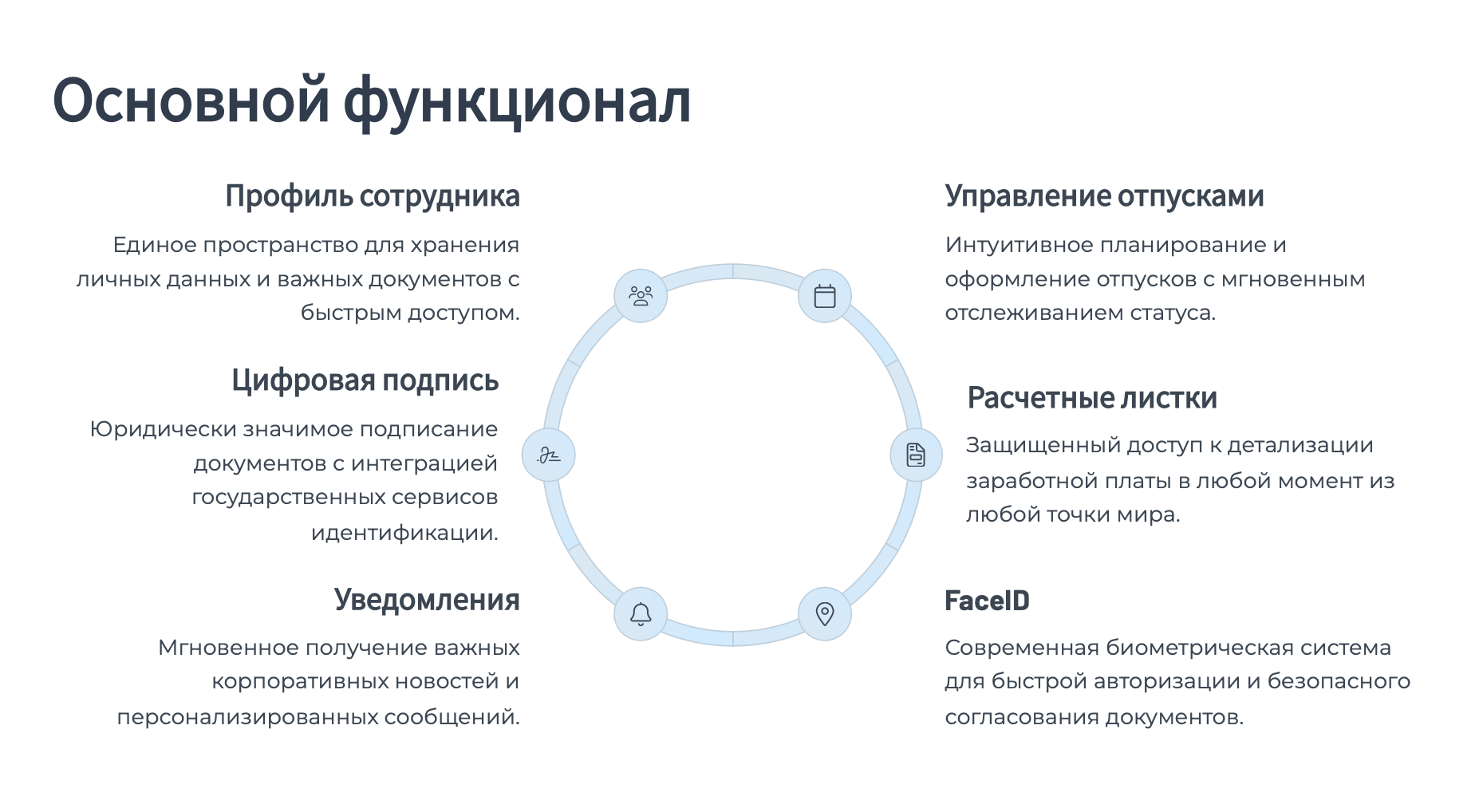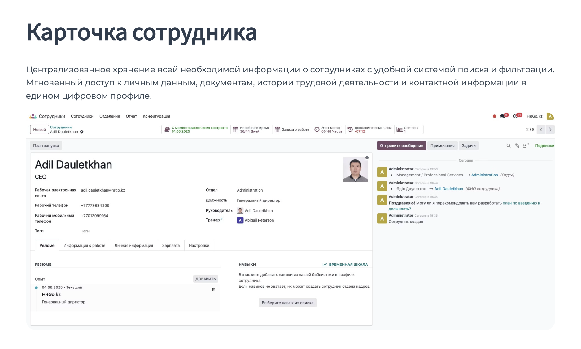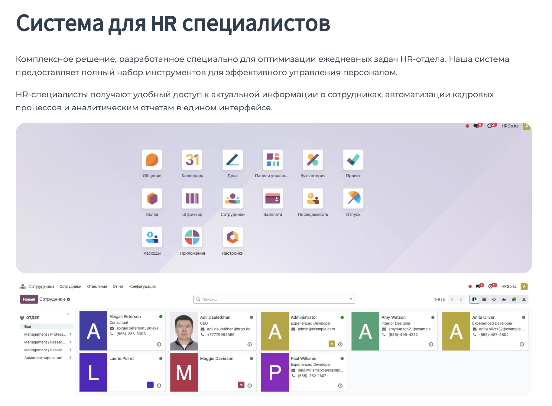 Функционирует совместно с комплексной ERP системой для HR департамента.